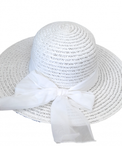 Γυναικείο ψάθινο καπέλο – λευκό με μαύρη κορδέλα M2613 . Διαθέτει εσωτερικό κορδόνι για ακριβής ρύθμιση μεγέθους.
