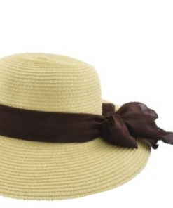 Γυναικείο ψάθινο καπέλο – λευκό με μαύρη κορδέλα M2613 . Διαθέτει εσωτερικό κορδόνι για ακριβής ρύθμιση μεγέθους.