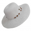 Καπέλο ψάθινο γυναικείο σε λευκό χρώμα. Διαθέτει κορδόνι με χάντρες.