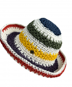 Aria Bags Hats Χειροποίητο πλεκτό καπέλο μπεζ χρώμα με καφέ κορδόνι Μ1874
