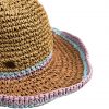 Χειροποίητο πλεκτό καπέλο μπεζ με μωβ και μπλε Μ9115. Διαθέτει εσωτερικό κορδόνι για ακριβής ρύθμιση μεγέθους.
