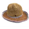 Χειροποίητο πλεκτό καπέλο μπεζ με μωβ και μπλε Μ9115