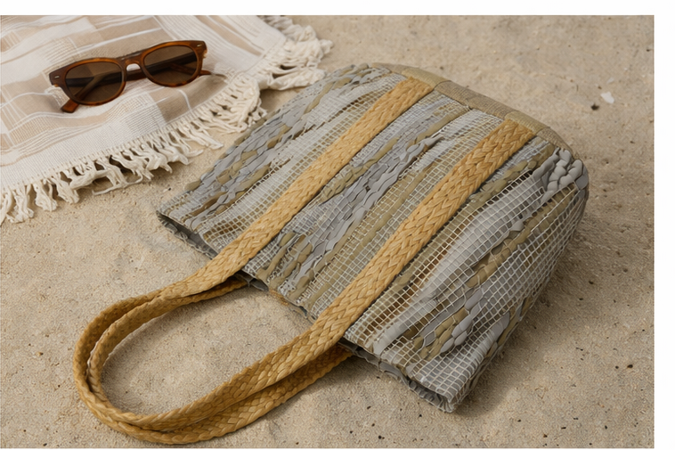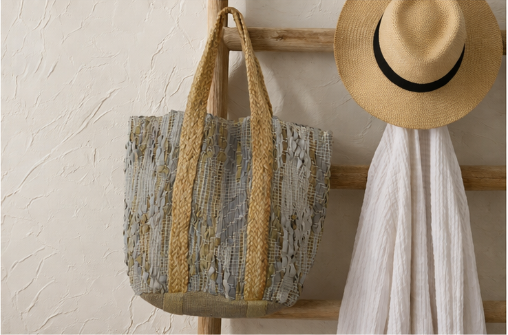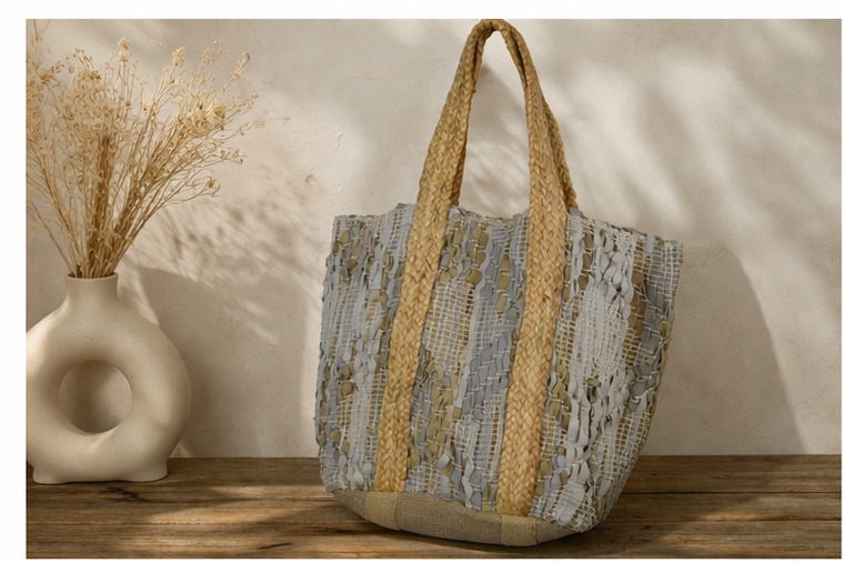 Αναβάθμισε το καλοκαιρινό σου look με αυτή την εντυπωσιακή υφασμάτινη πλεκτή τσάντα ώμου σε αποχρώσεις λευκού, γκρι και μπλε. Με μοναδικό γεωμετρικό boho σχέδιο, χειροποίητη υφή και φαρδιές πλεξούδες-λαβές, αποτελεί την ιδανική επιλογή για τη θάλασσα, τις βόλτες ή τις καθημερινές σου ανάγκες.https://bagshats.gr/