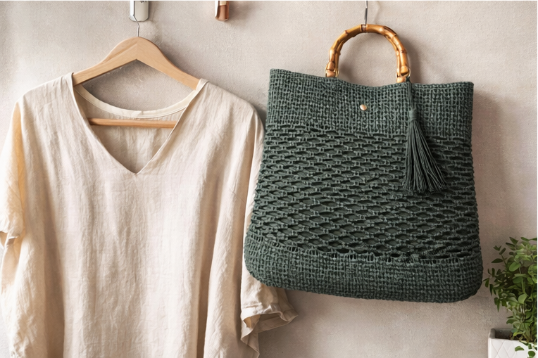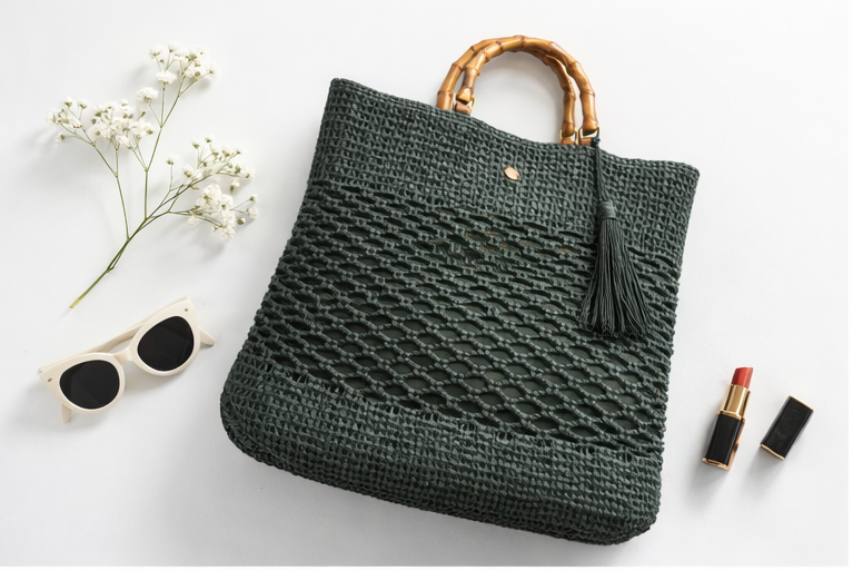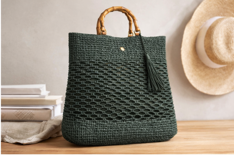 Αναδείξτε το καλοκαιρινό σας στυλ με αυτή τη χειροποίητη πλεκτή τσάντα ώμου σε ιδιαίτερη απόχρωση χακί/πράσινου. Κατασκευασμένη από ανθεκτικό συνθετικό ίνες με εντυπωσιακό δίχτυ στο κέντρο, διαθέτει κομψό bamboo χερούλι και διακοσμητική φούντα που προσδίδουν φυσική και εκλεπτυσμένη αισθητική. Ιδανική για καθημερινές εμφανίσεις, διακοπές, παραλία ή βόλτες στην πόλη, προσφέρει άνετο χώρο για όλα τα απαραίτητα χωρίς να χάνει τη στιλάτη της εμφάνιση. Ένα must-have αξεσουάρ για όσες αγαπούν το boho και minimal chic look. https://bagshats.gr/