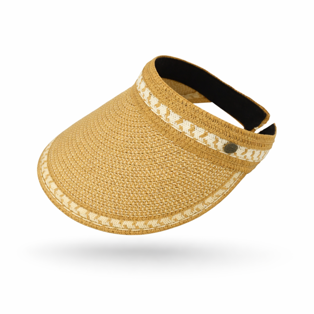 Το γυναικείο ψάθινο visor P2005 προσφέρει άνετη εφαρμογή και προστασία από τον ήλιο, ιδανικό για παραλία, περπάτημα ή καθημερινές δραστηριότητες. Κατασκευασμένο από ελαφρύ και ανθεκτικό ψάθινο υλικό, διαθέτει ανοιχτή πίσω πλευρά για δροσερή αίσθηση και εύκολη προσαρμογή. Το κομψό φυσικό χρώμα το κάνει ευκολόφορετο με κάθε καλοκαιρινό outfit. Ένα απαραίτητο αξεσουάρ για όσες θέλουν στυλ και άνεση κάτω από τον ήλιο. https://bagshats.gr/