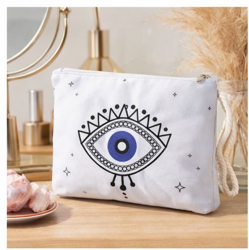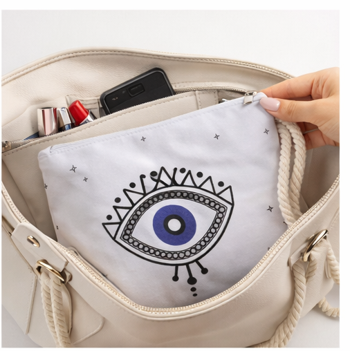 Κομψό και πρακτικό νεσεσέρ σε λευκό χρώμα με minimal σχέδιο “μάτι”, εμπνευσμένο από τη μεσογειακή αισθητική. Ιδανικό για καθημερινή χρήση, για καλλυντικά, μικροαντικείμενα ή ως stylish clutch.Διαθέτει ανθεκτικό φερμουάρ και πρακτικό λουράκι καρπού για εύκολη μεταφορά. Το ιδιαίτερο σχέδιο προσθέτει μία μοντέρνα αλλά και συμβολική πινελιά που ξεχωρίζε. https://bagshats.gr/