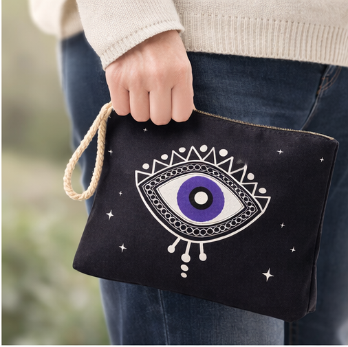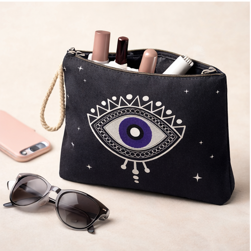 Κομψό και πρακτικό νεσεσέρ σε μαύρο χρώμα με minimal σχέδιο “μάτι”, εμπνευσμένο από τη μεσογειακή αισθητική. Ιδανικό για καθημερινή χρήση, για καλλυντικά, μικροαντικείμενα ή ως stylish clutch.Διαθέτει ανθεκτικό φερμουάρ και πρακτικό λουράκι καρπού για εύκολη μεταφορά. Το ιδιαίτερο σχέδιο προσθέτει μία μοντέρνα αλλά και συμβολική πινελιά που ξεχωρίζε. https://bagshats.gr/
