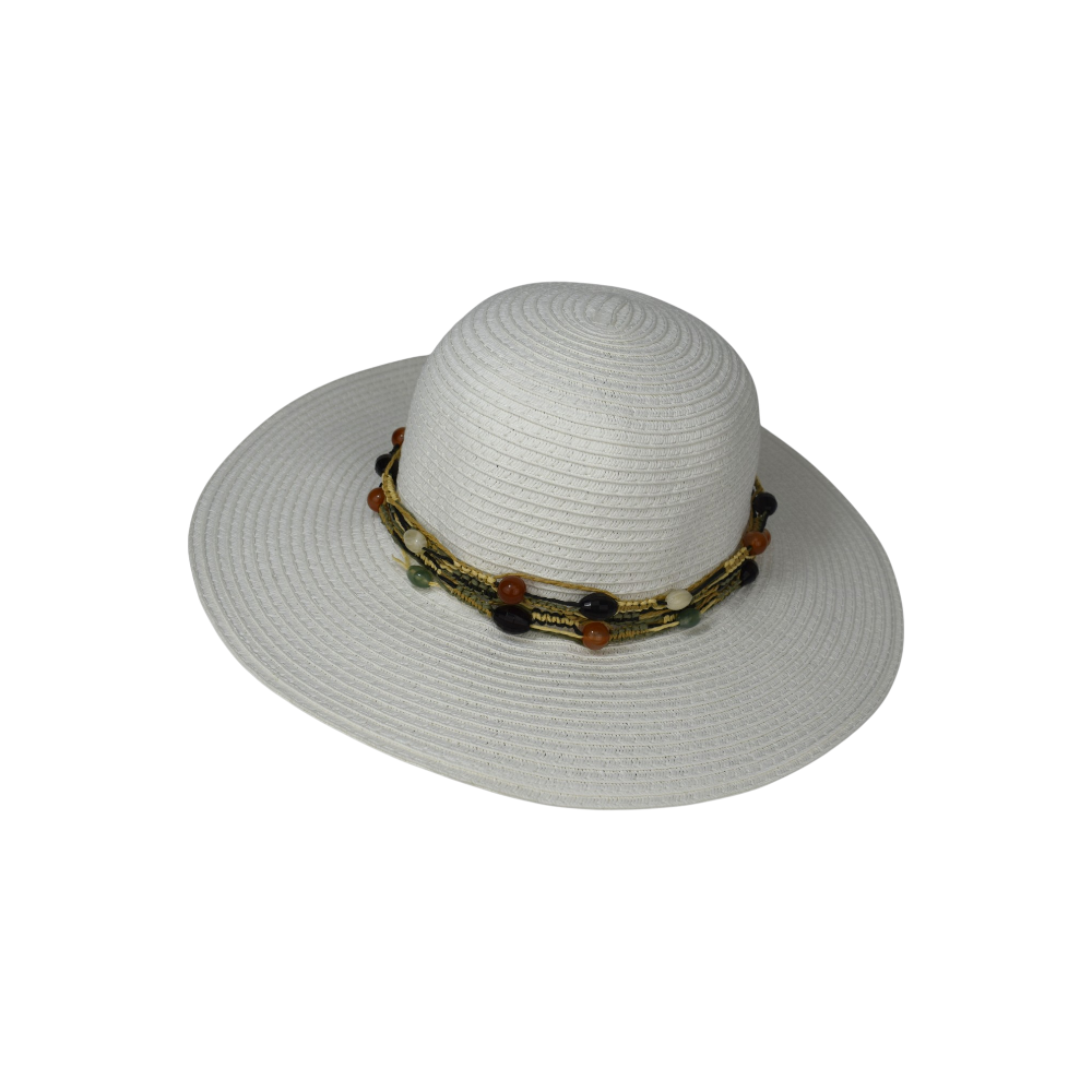 Aria Bags Hats Γυναικείο Καπέλο Ψάθινο Με Χάντρες Λευκό M1551.